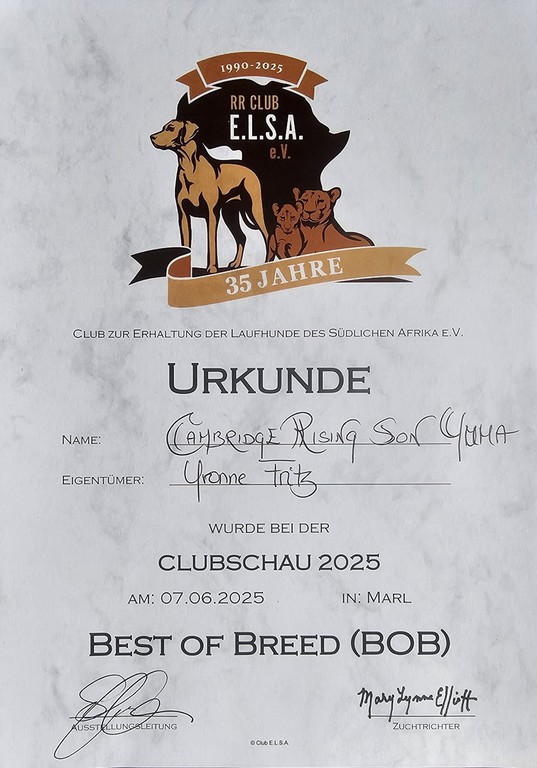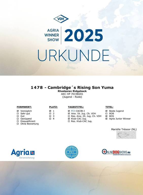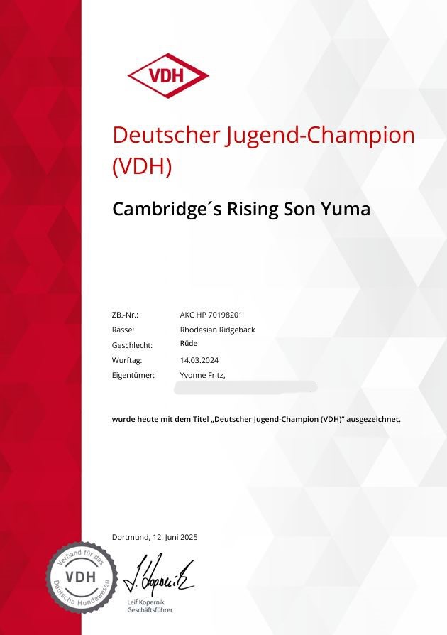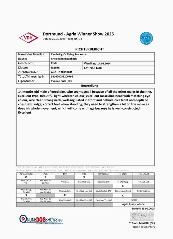 Was für ein Erfolg für unseren kleinen Mann bei über 70 angemeldeten Ridgebacks!