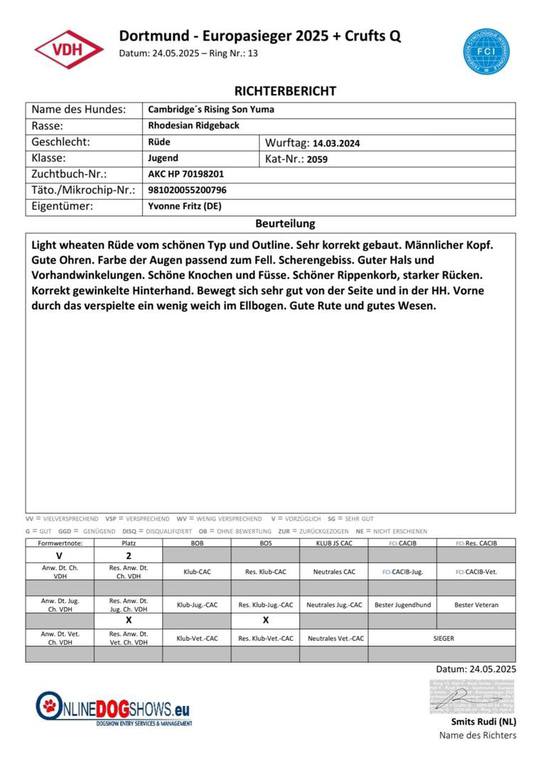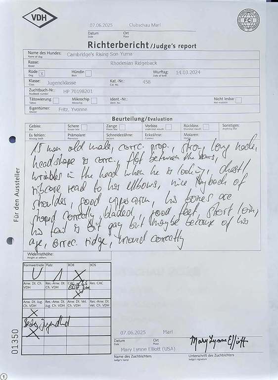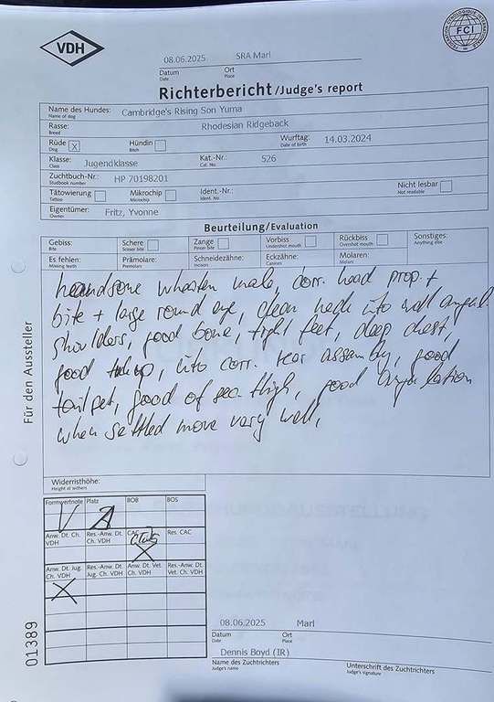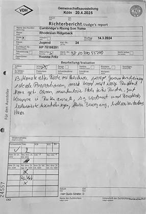 und holte sich das V2 Res. Anw. Dt. Jug. Ch. VDH und einem richtig tollen Richterbericht.
