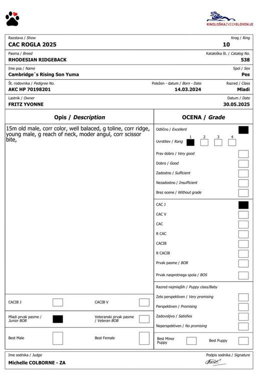 Vorzüglich 1 / CAC / Bester Rüde und BOB!!!!