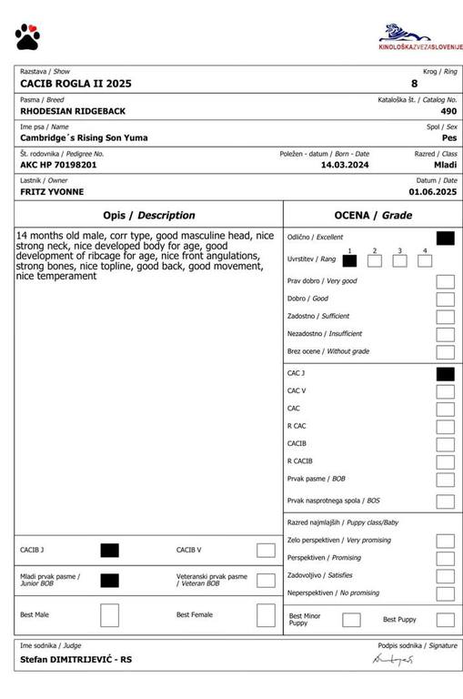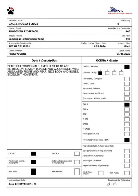 Tag 1 CACIB Richter: Kuzelj D. (SVN)