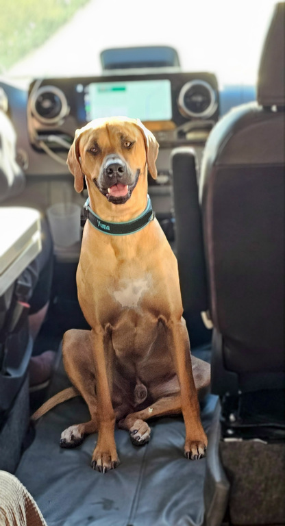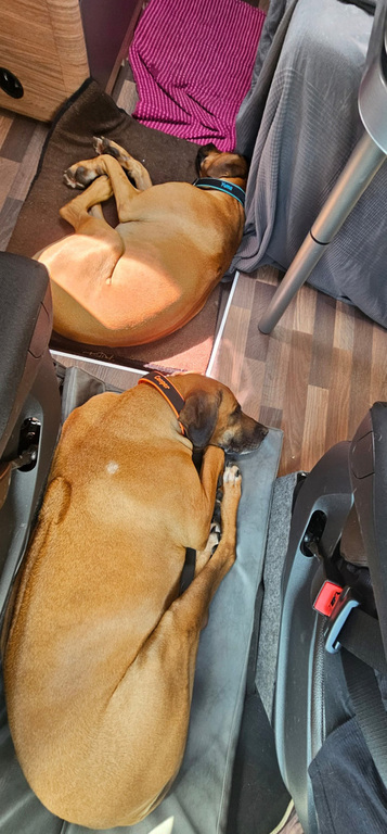 Sein erstes Mal in einem Wohnmobil mit begrenztem Platz, nur normale Spaziergänge ohne Herumtollen und freies Laufen, und sein erstes Mal auf einer Fähre.