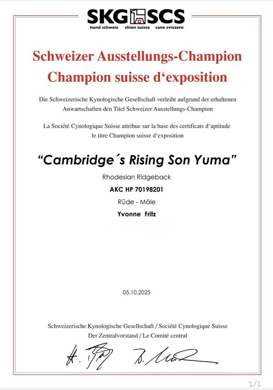 Erster Championtitel für Yuma!