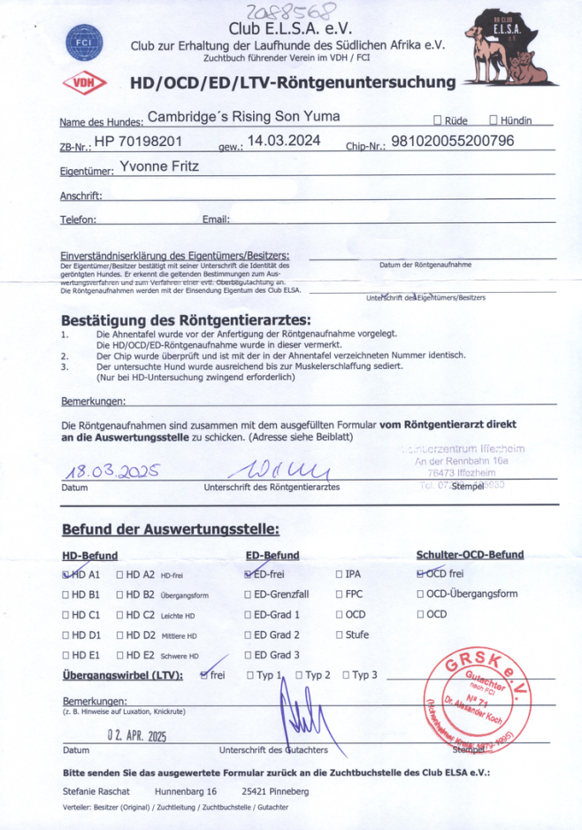 HD: A1 ED: free OCD: free LTV: free DM: N/N JME: N/N EOAD: N/N BLUE: N/N liver: N/bs
